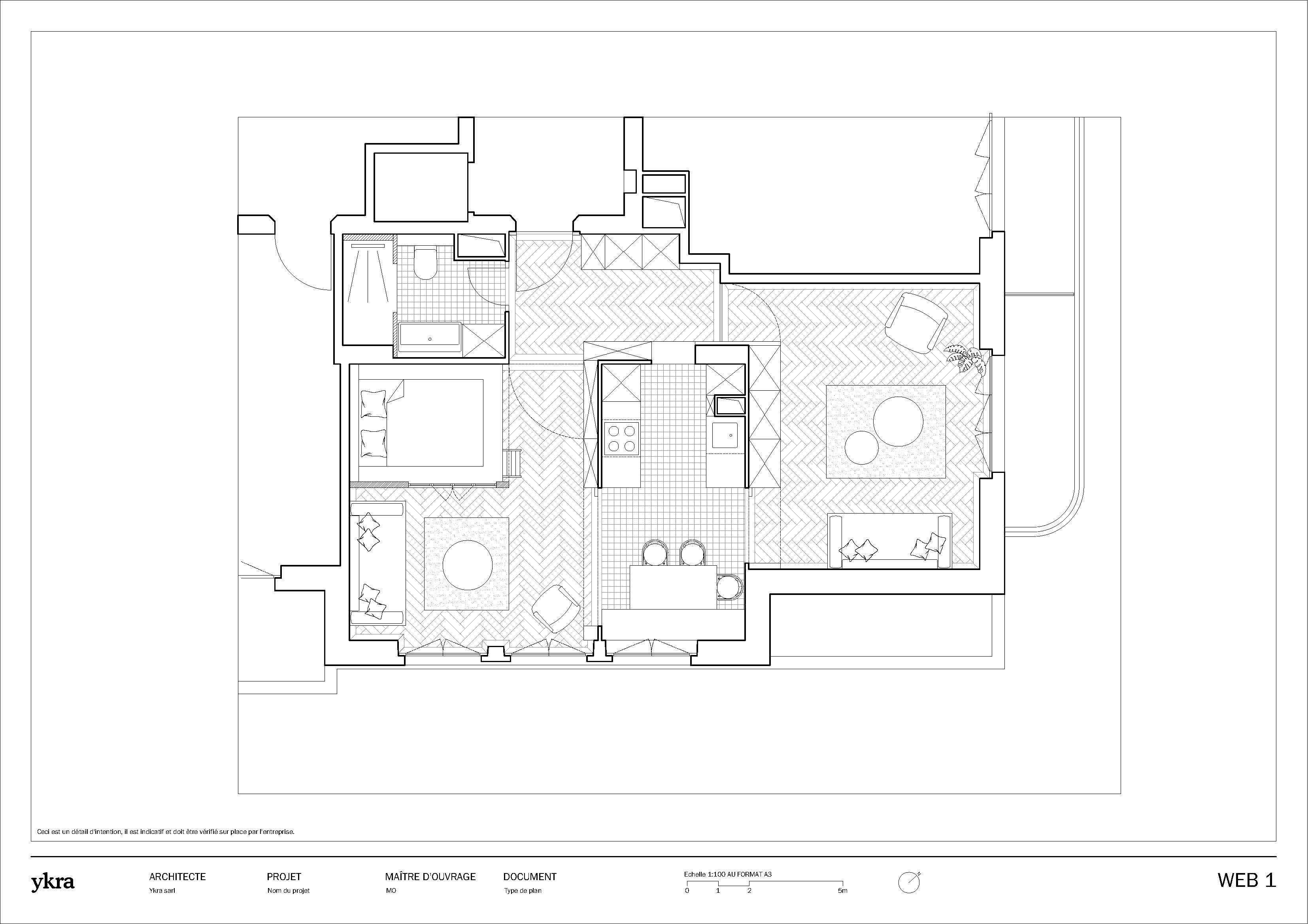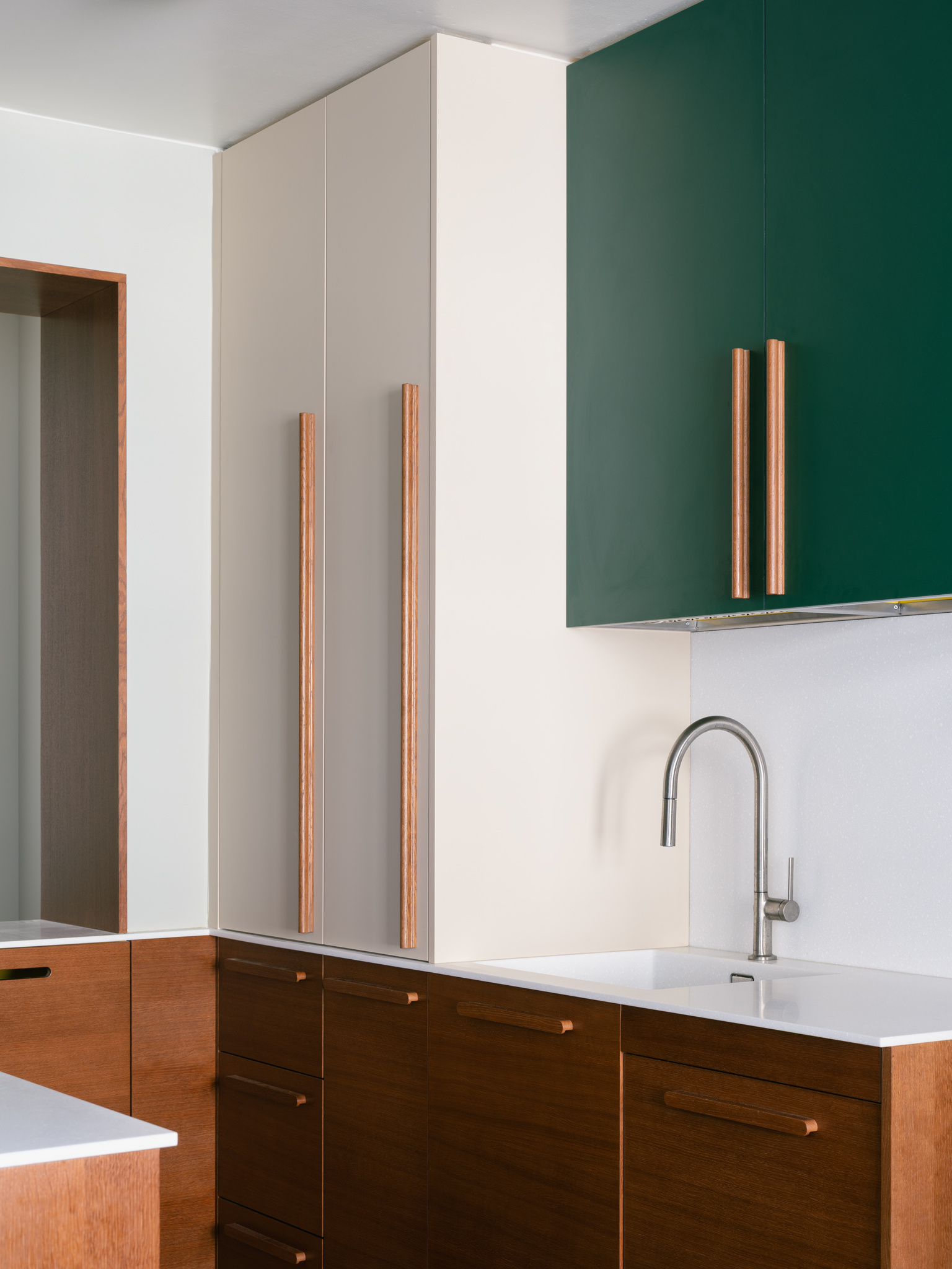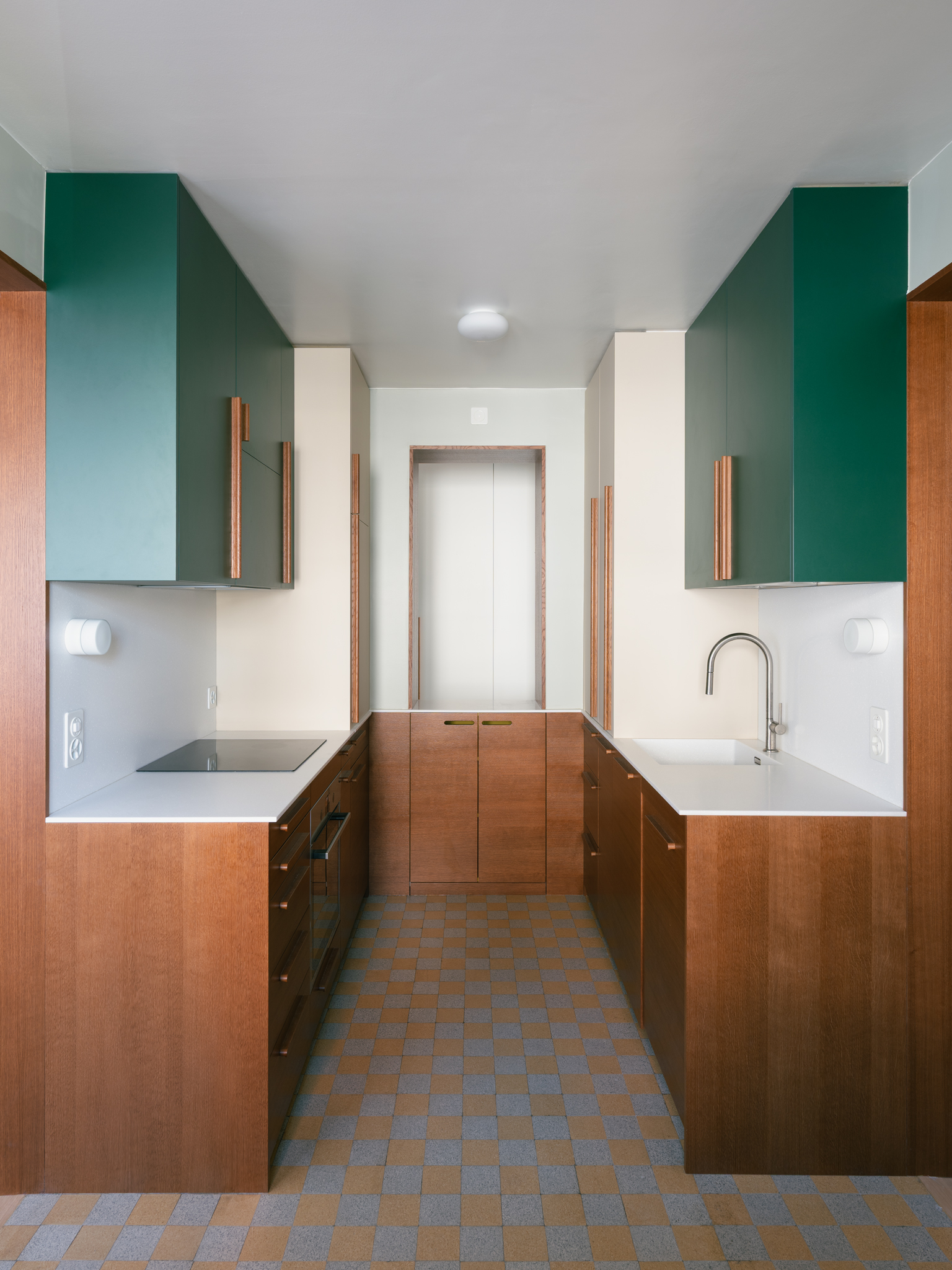 Our trick? A central kitchen box, the true beating heart of the space. Around it, the apartment unfolds into a mosaic of spatial sequences, each adaptable to modulate openness and privacy according to needs. A subtle interplay of sliding doors and perspectives, to harmoniously orchestrate life and home.