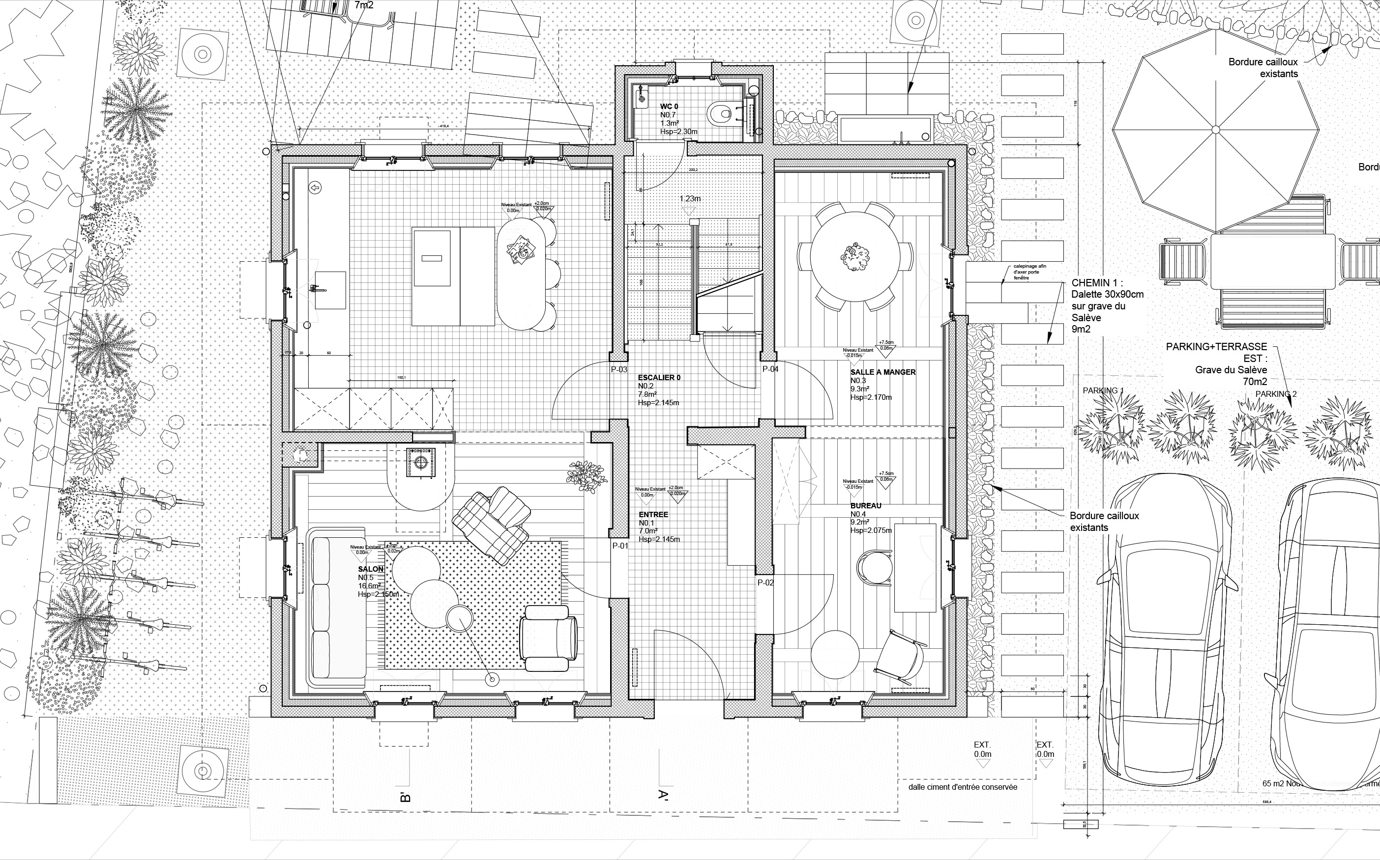 The spacious garden has also been enhanced, and new openings have been created in the rear facade of the house to emphasize its connection with the landscape.