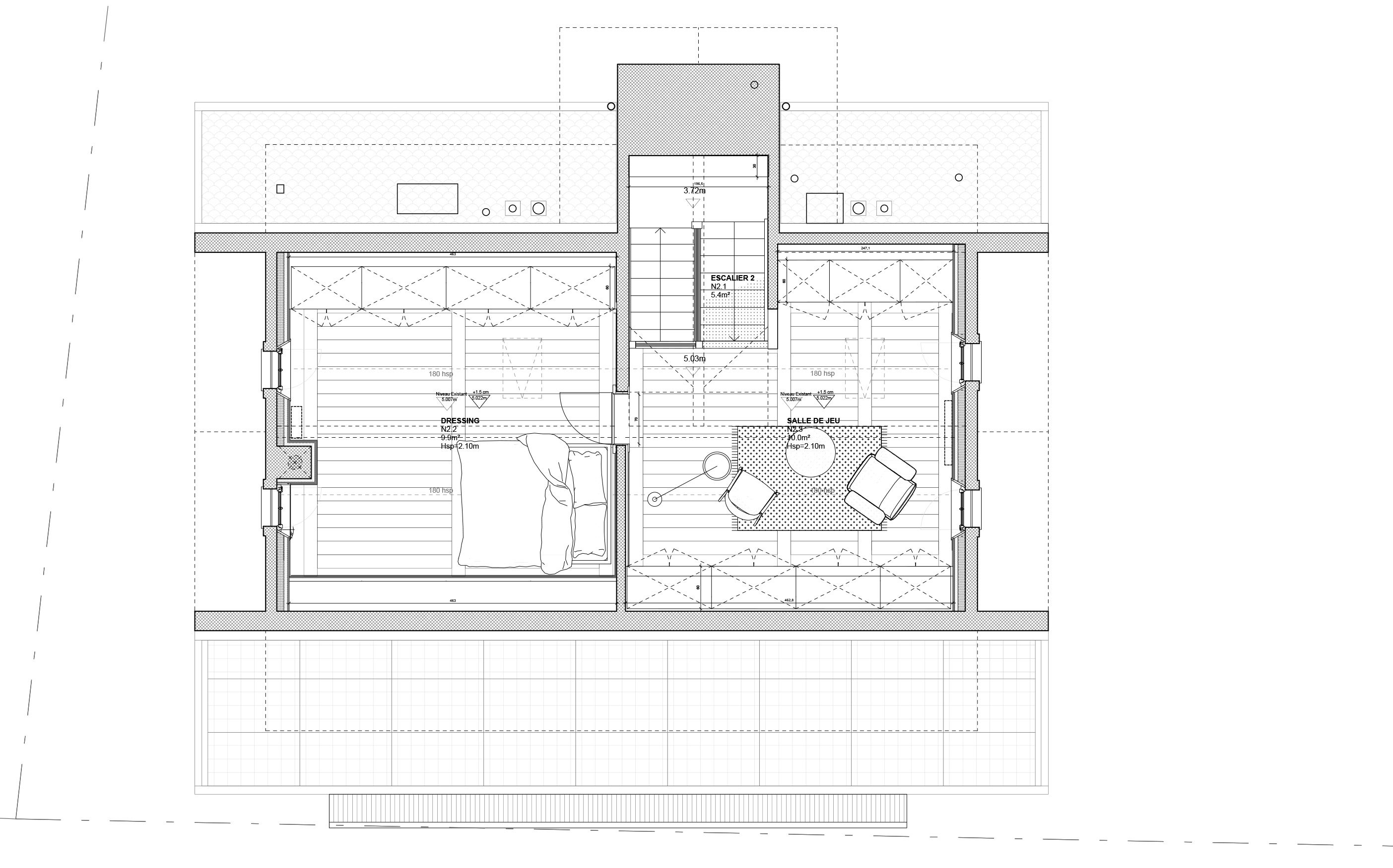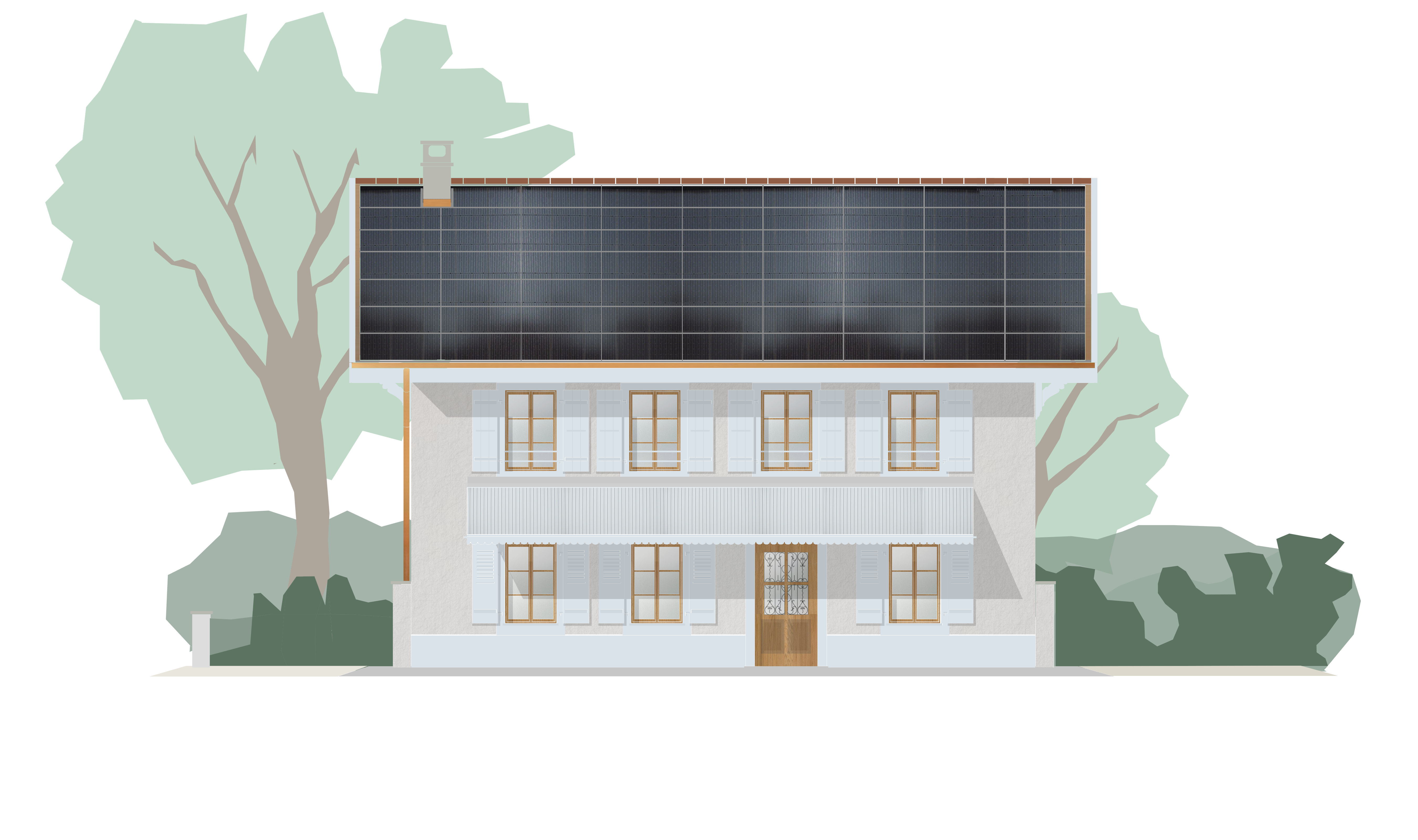 However, its thermal comfort has been completely revisited. Its heating system is based on the use of geothermal energy, and the entire south-facing side of the roof is covered by photovoltaic and thermal solar panels.