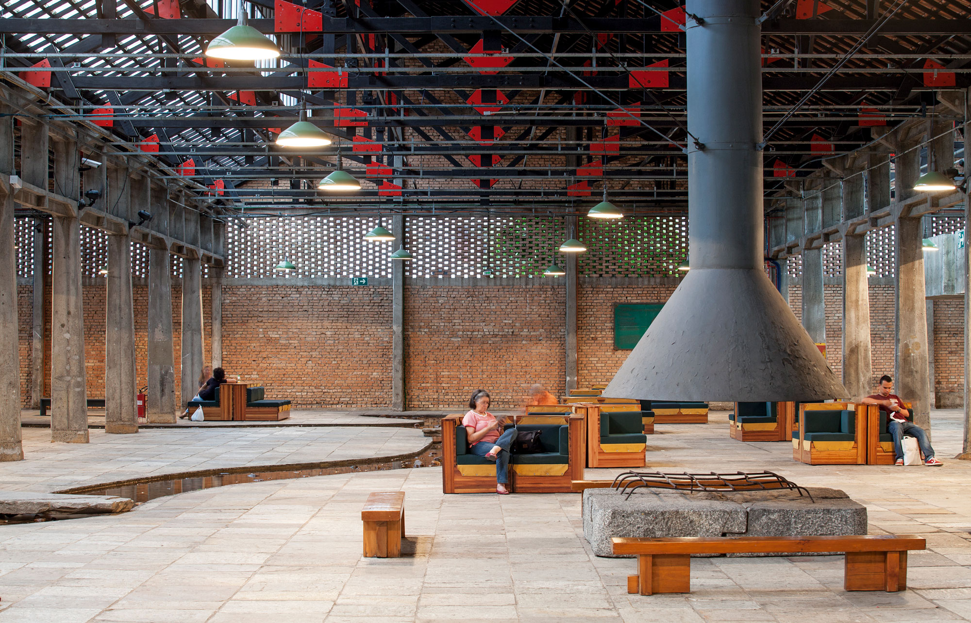 The furniture designed for the occasion is inspired by the simplicity of design but great functionality of Lina Bo Bardi's creations for the SESC Pompeia in São Paulo. The sofa modules fit together perfectly to create - as required - work areas throughout the room. They can also be stored under the “bandeau” table located under the windows to completely free up the space. The round table unfolds or folds up against the wall, creating a presentation board with a small side board. A kitchenette offers coworkers a moment of relaxation and makes the place a convivial place where working and sharing cohabit.