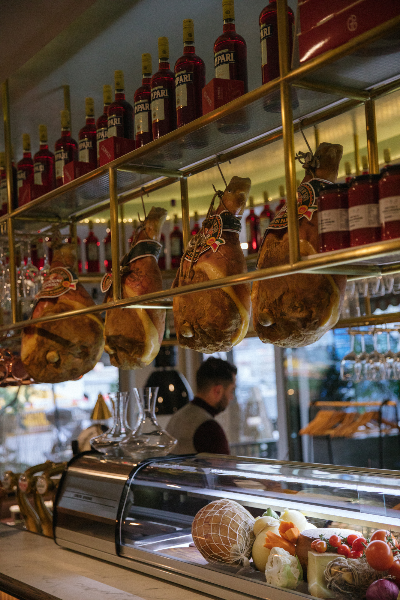 L’Osteria Zaza reprend les codes de l’Osteria italienne où la nourriture et le produit sont à l’honneur. Le projet de réaménagement a pour pièce maîtresse un grand bar central en marbre et revêtement chêne fumé ainsi qu’une étagère suspendue en laiton le tout pensé comme un grand paquebot amarré au milieu du restaurant ! En proue, le bar tender et à la place des moteur, le traditionnel four à pizza napolitain.