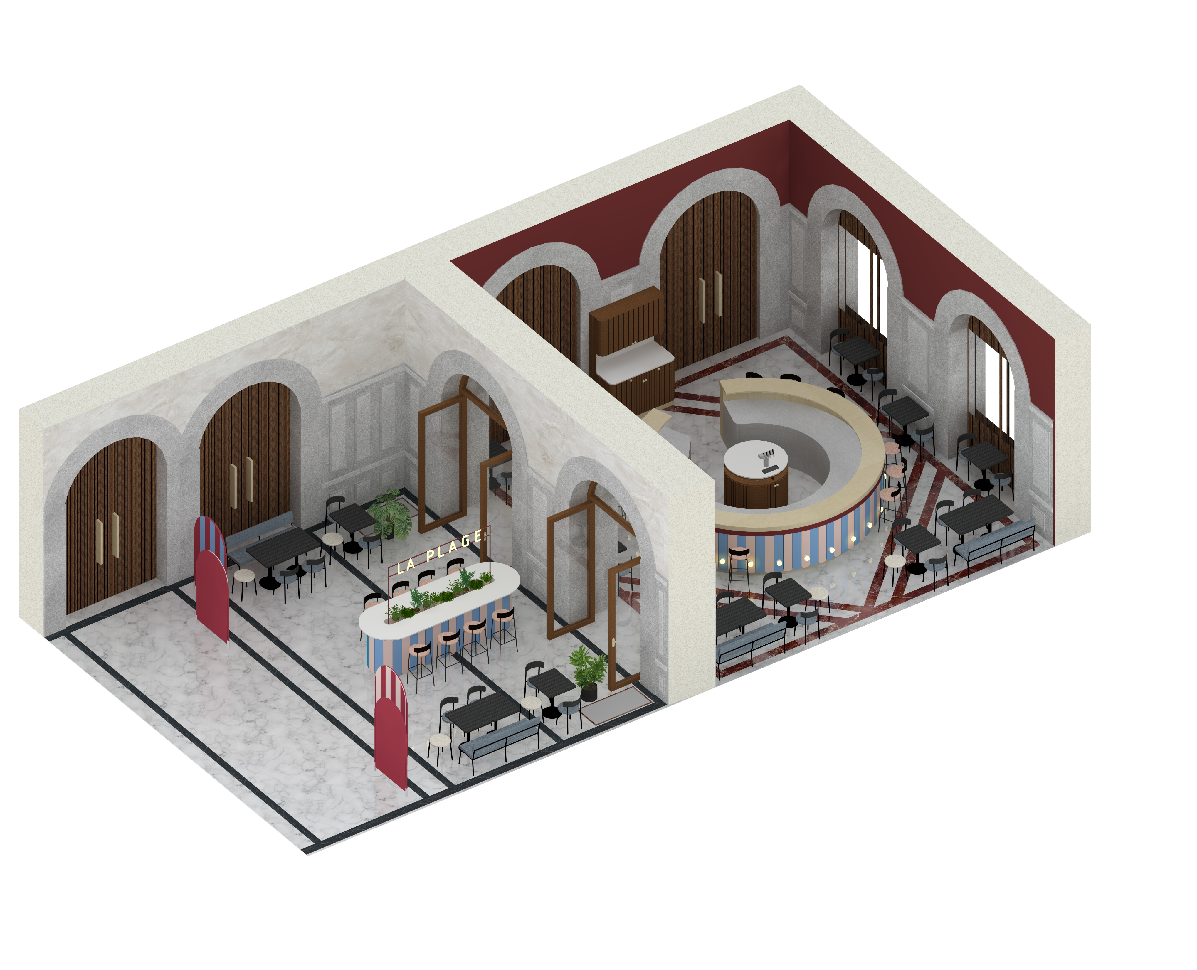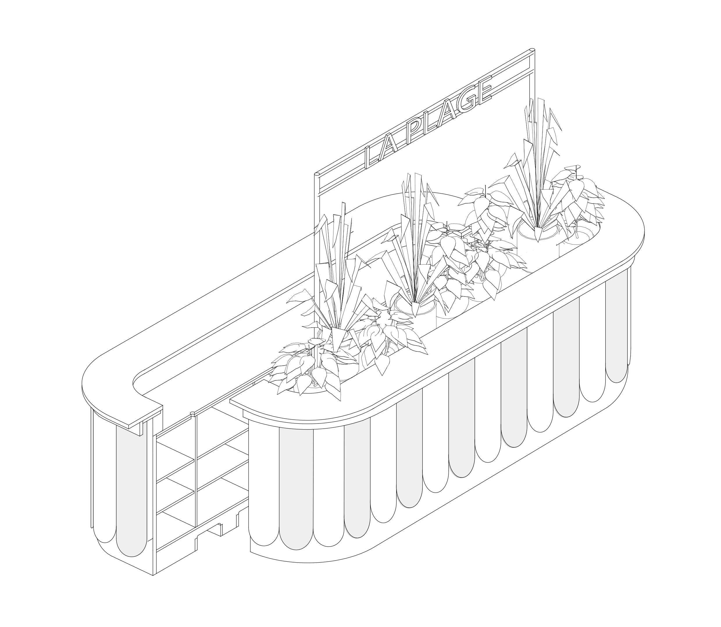 A meeting point between the Opéra public and passers-by looking for a coffee, the beach theme and its codes are reflected in the collective imagination of the furniture: tables, chairs, counters and structures resonate with the recently renovated emblematic heritage sites.