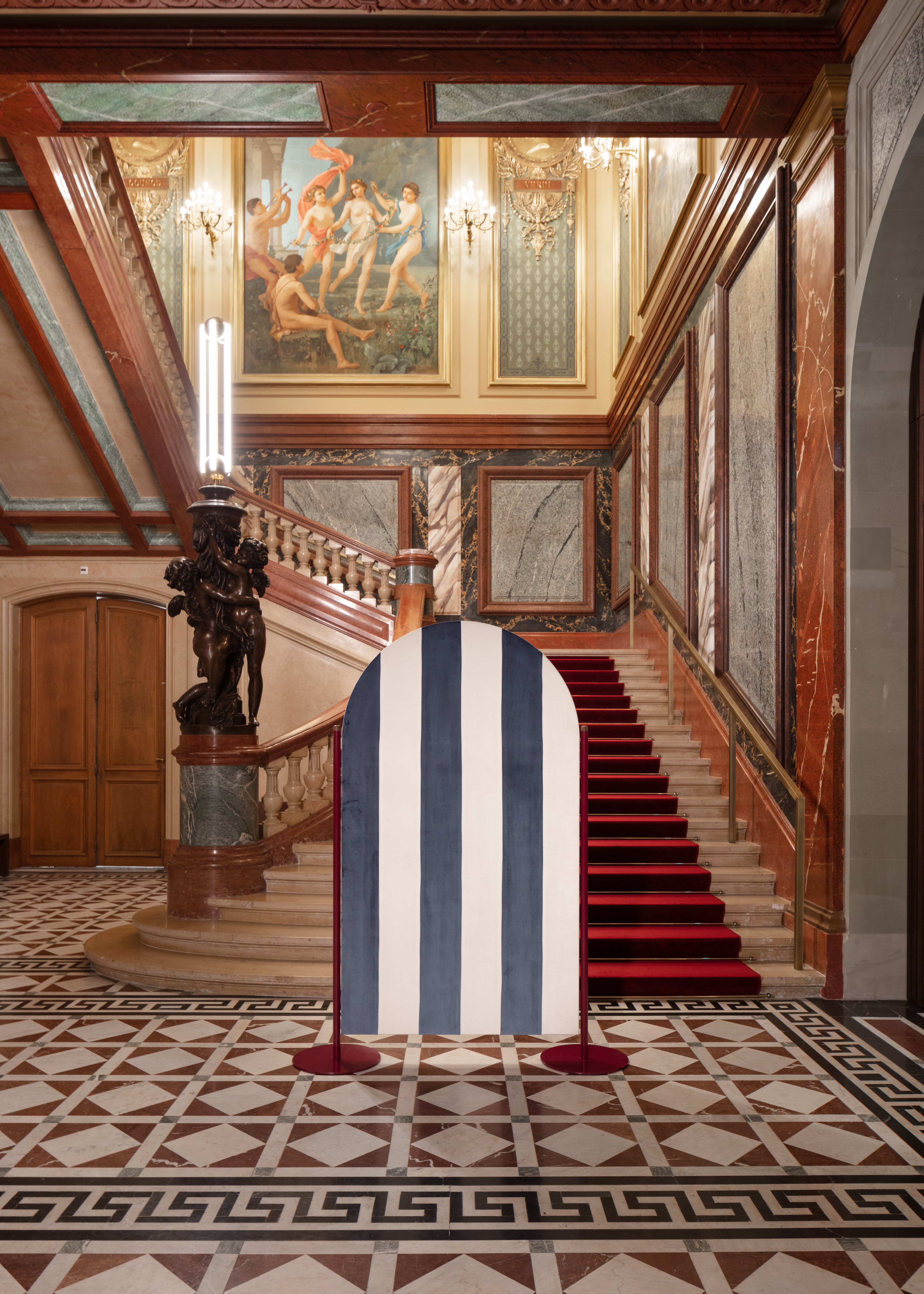 Colors, materials and motifs echo the world of opera, reflecting a new-found harmony. The beach and its stripes: those of Italian palace parasols, Breton marinières or elegant pleated skirts.
