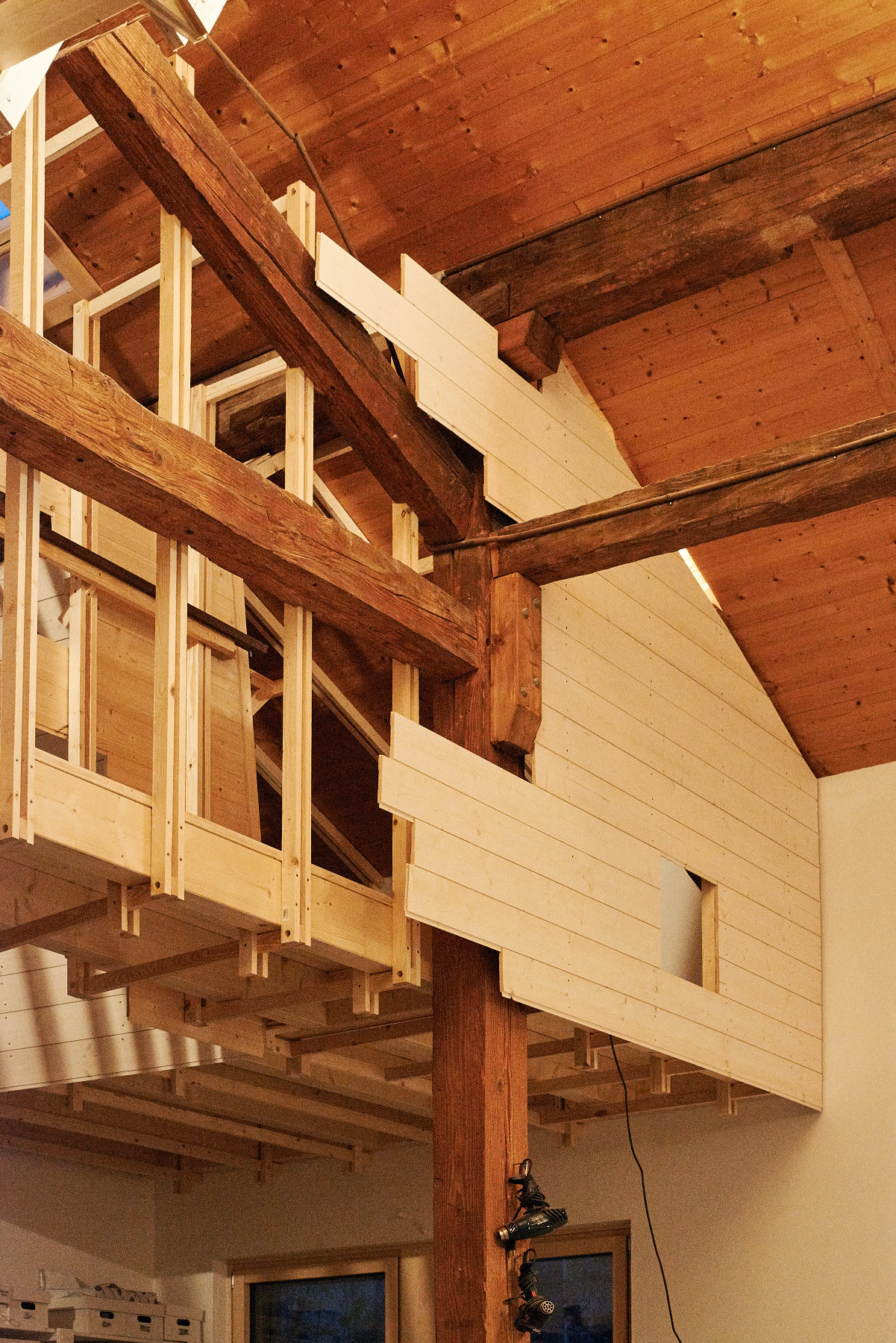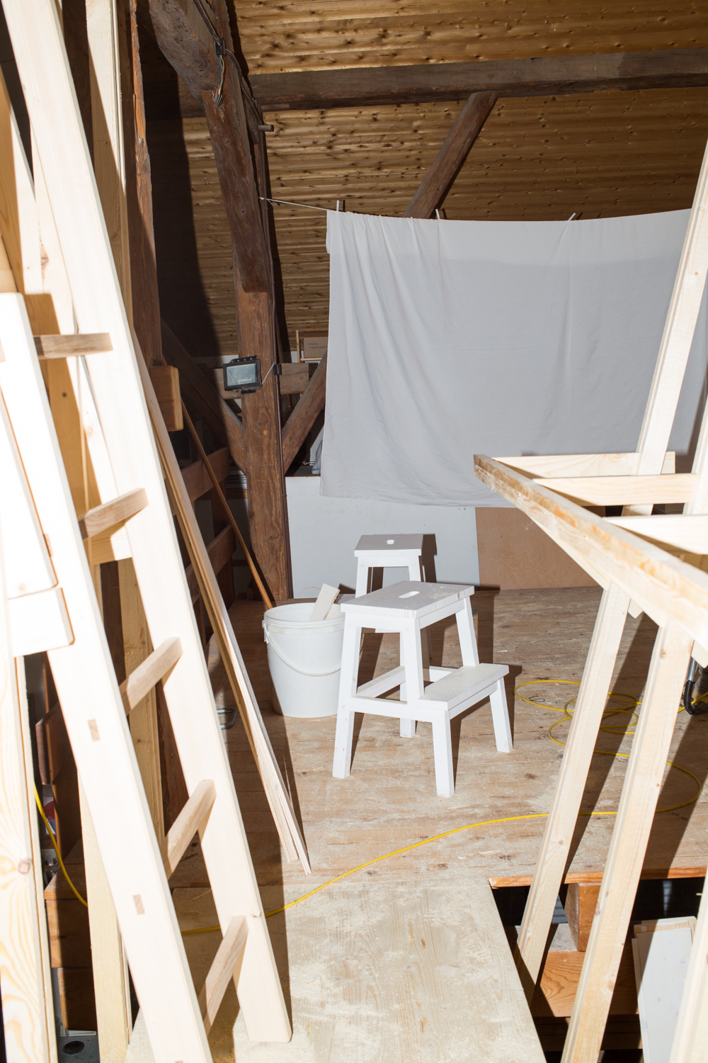 Based on the principle that learning a trade also involves practising construction, the students were encouraged to ‘skilfully tinker’ with instant built objects. They spent a week in the Vaud Jura designing and building two huts as a team in a barn that had been converted into a ceramists' workshop. Each hut is designed to accommodate one or two people so that they can sleep, read and work. They are micro-dwelling units. The students had a workshop, tools and a van at their disposal and went to one of the region's famous DIY shops, HORNBACH, with a tight budget that they had to manage precisely. Using the materials they bought, they devised details and put them into practice straight away. Thanks to their knowledge of tools, materials and how to assemble them, they will be able to build the two cabins and, at the same time, keep a logbook of their experience by drawing up instructions for use. The new do-it-yourselfers had to demonstrate greater collective organisation and good management of time and resources.